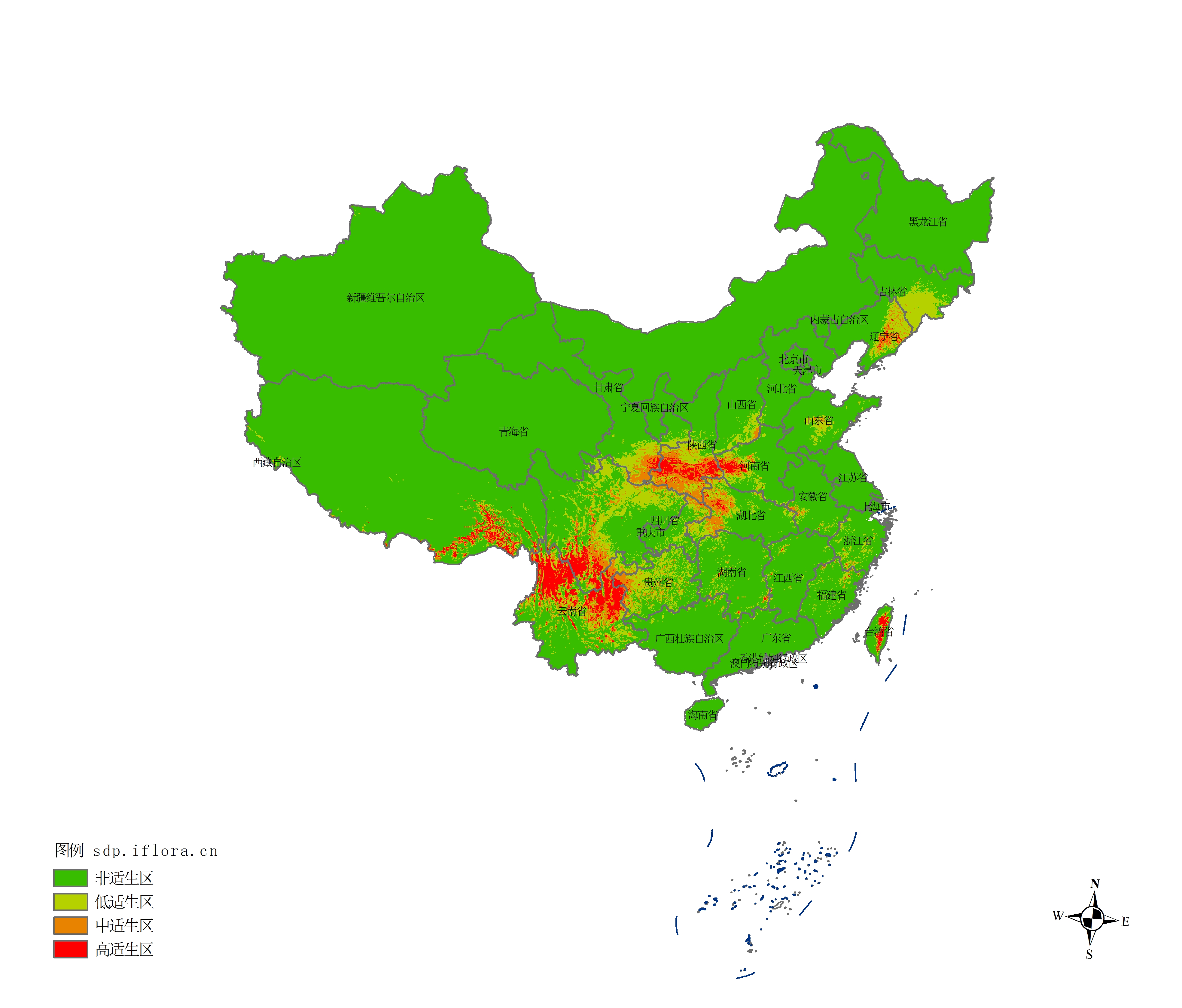 Distribution 4:陕西省,西藏自治区,贵州省,湖北省,辽宁省,云南省,吉林省,台湾省,安徽省,四川省,山西省---《中国生物物种名录》