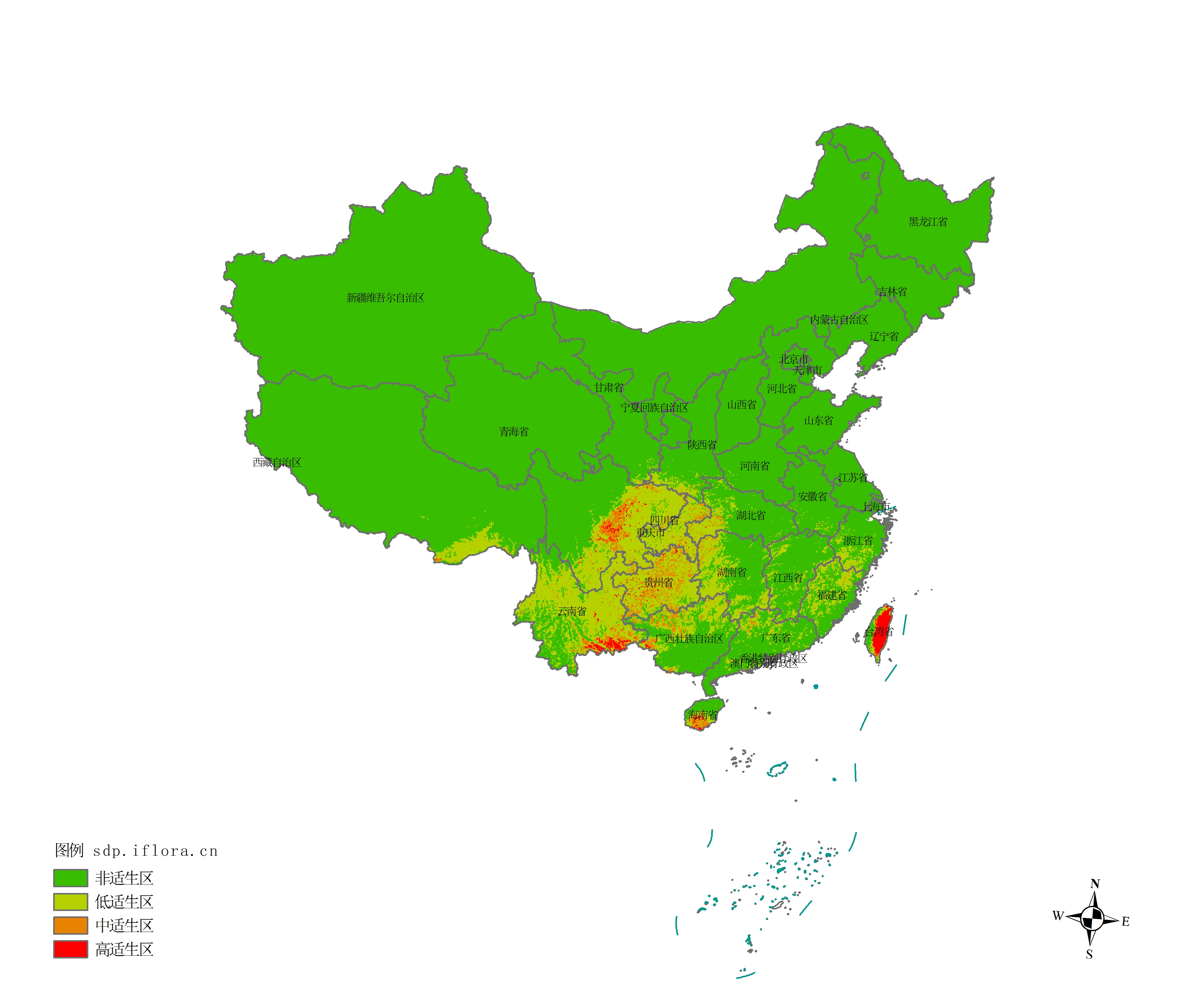Distribution 4:广西壮族自治区,福建省,西藏自治区,贵州省,江西省,重庆市,湖南省,湖北省,广东省,云南省,香港特别行政区,四川省,甘肃省,陕西省,台湾省,河南省---《中国生物物种名录》